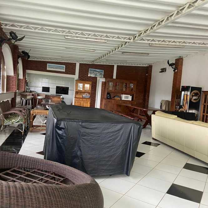 ✔ Rancho com área gourmet, churrasqueira, fogão a lenha e mesa de sinuca